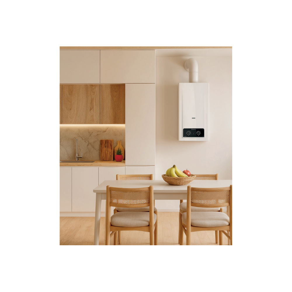 - Elektroniczny zapłon, który uruchamia się automatycznie przy poborze wody