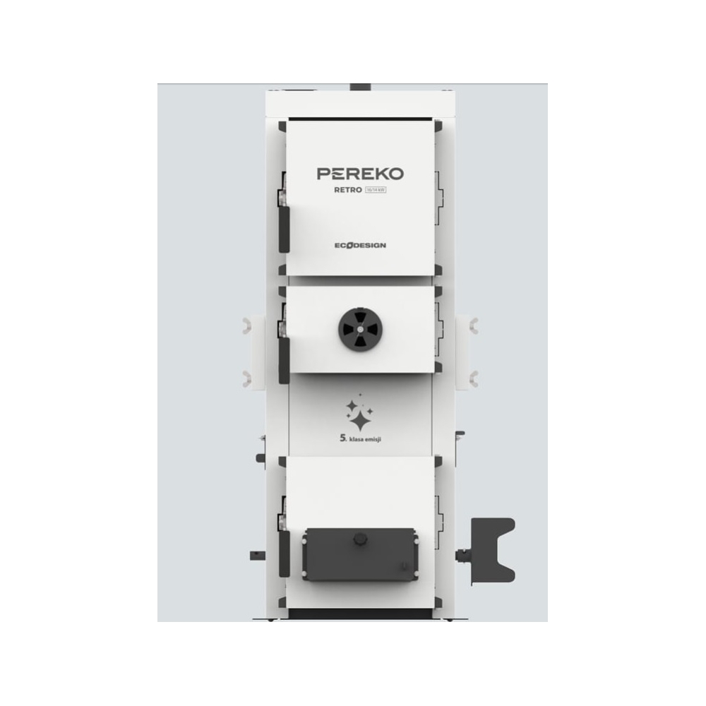 Kocioł zasypowy Pereko Retro zgazowujący drewno 20 kW klasa 5 ECO Design, czopuch do tyłu