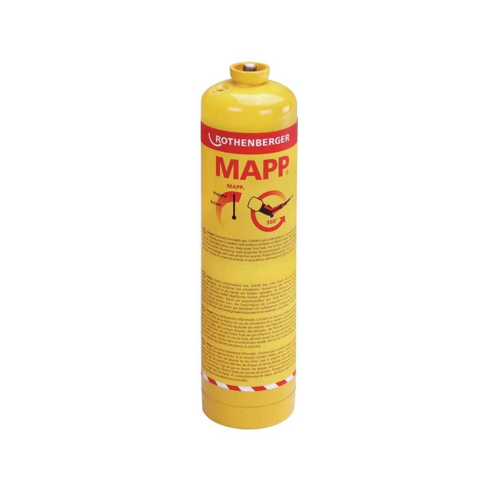 Gaz ROTHENBERGER MAPP to specjalna mieszanka gazów spełniająca najwyższe wymagania w zakresie lutowania twardego i miękkiego. W połączeniu z czystym tlenem, podobnie jak w przypadku ROTHENBERGER Allgas Mobile Pro, może być również używany do cięcia płomieniowego. Aluminiowy, monoblokowy korpus cylindra, który jest wykonany z jednego kawałka, nie wymaga żadnych dodatkowych szwów, dzięki czemu zapewnia większe bezpieczeństwo.