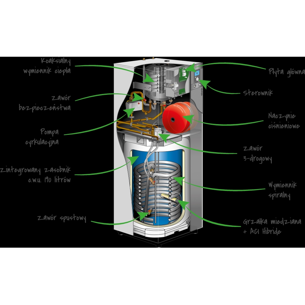 Moduł ten montowany jest wewnątrz budynku. Składa się on ze zbiornika buforowego, we wnętrzu którego znajduje się opatentowany wymiennik grzewczy z wbudowaną grzałką 3 kW z możliwością zwiększenia mocy do 6 kW .