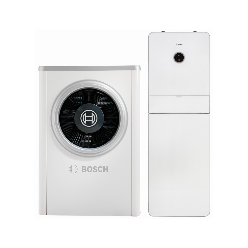 Pakiet pompa ciepła monoblok Bosch Compress CS7000i AW 17 ORMS-T 14,4 kW, jednostka zewnętrzna + jednostka wewnętrzna stojąca z zasobnikiem nierdzewnym 184 litrów z dodatkową wężownicą + grzałka
