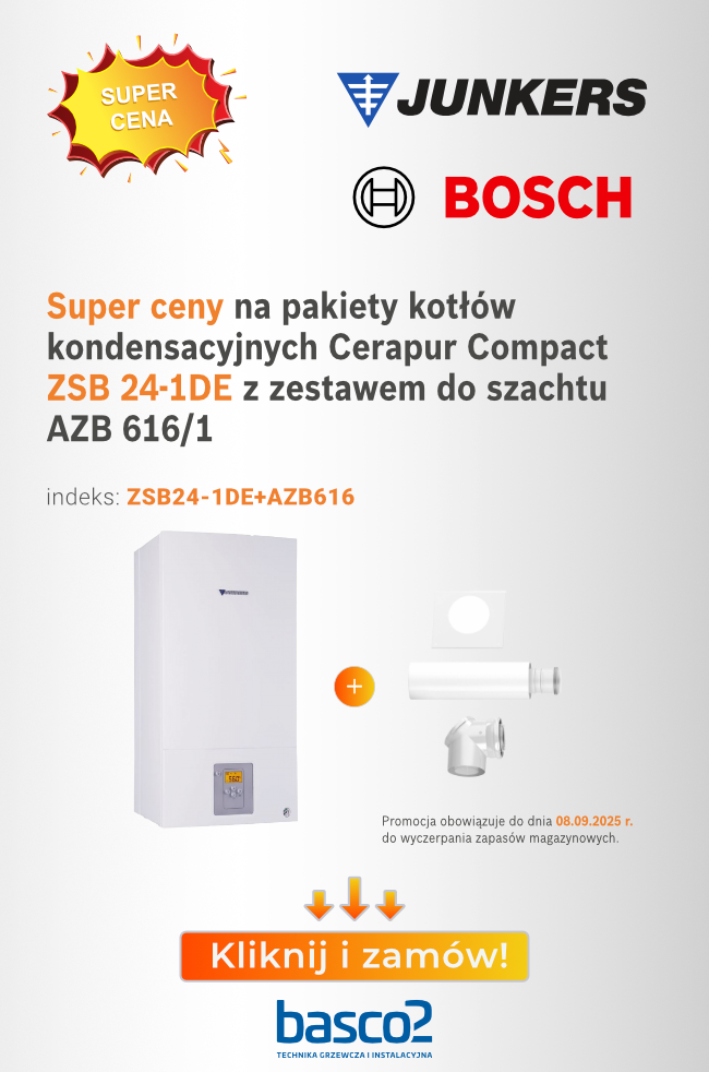 Dostępny od ręki: Pakiet kocioł Cerapur Compact ZSB 24-1DE + zestaw do szachtu.