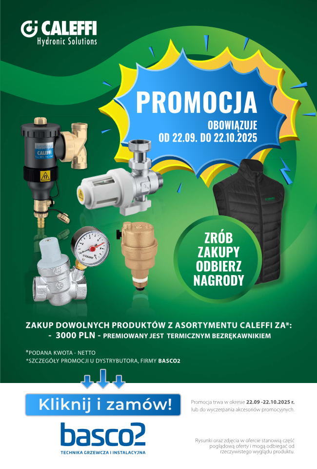 Startujemy z nową promocją, która wesprze Waszą sprzedaż w nadchodzącym sezonie grzewczym. Od 22.09. do 22.10.2025 r., we współpracy z firmą Caleffi, oferujemy dedykowaną akcję promocyjną.