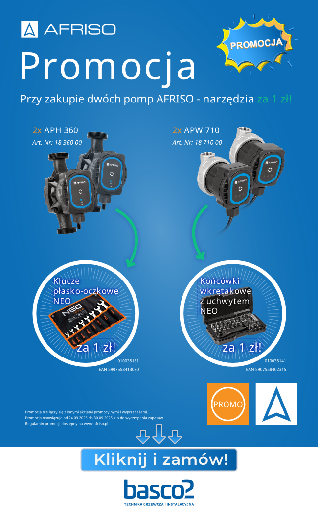 Zależy nam na tym, abyś miał wszystko, czego potrzebujesz do sprawnej instalacji. Dlatego w naszej nowej akcji promocyjnej łączymy niezawodne pompy AFRISO z praktycznymi narzędziami marki NEO. Kupując dwie pompy w jednym zestawie, otrzymujesz jedno z dwóch wybranych narzędzi za symboliczną złotówkę.