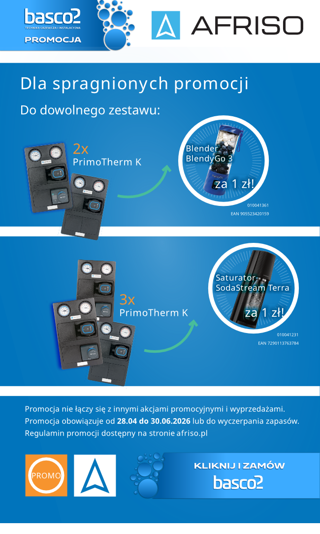 - Zestaw z Blenderem: Kup dowolne 2 sztuki grup pompowych PrimoTherm K , a otrzymasz bezprzewodowy Blender BlendyGo 3 za jedyne 1 zł.