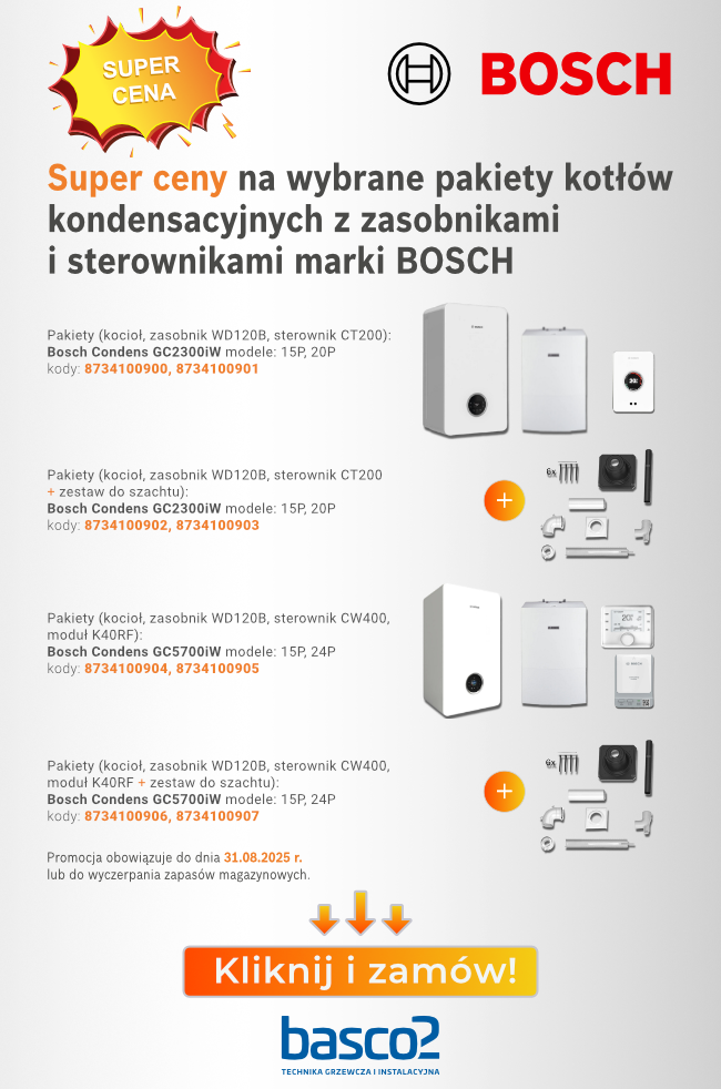 Przypominamy, że nasza oferta specjalna na pakiety kondensacyjne Bosch zarządzane mobilnie aplikacjami dobiega końca! To ostatni moment, aby skorzystać z promocyjnych cen, zanim upłynie termin 31 sierpnia 2025 r. lub wyczerpią się zapasy magazynowe.