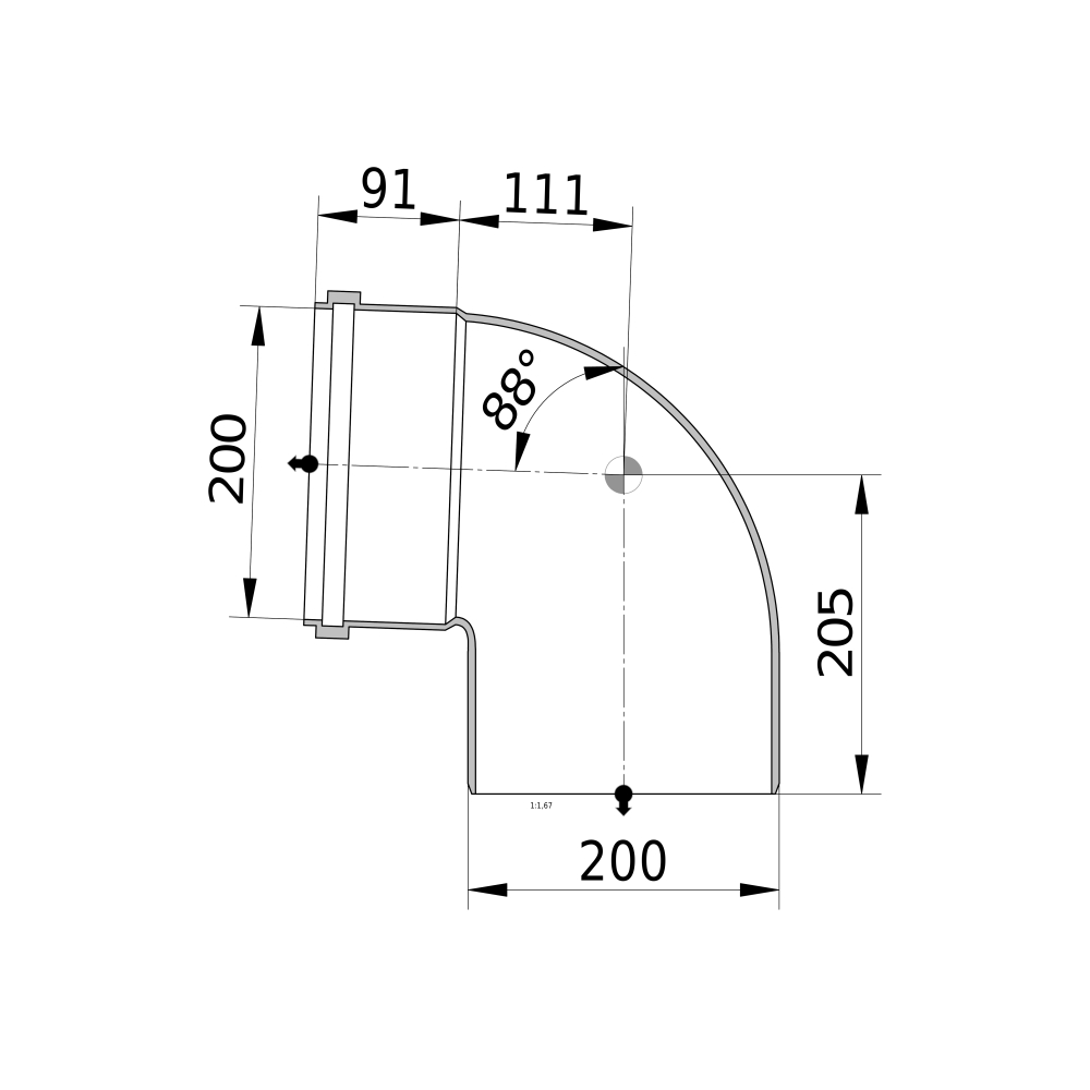 | Średnica nominalna połączenia 1 | DN 200 |