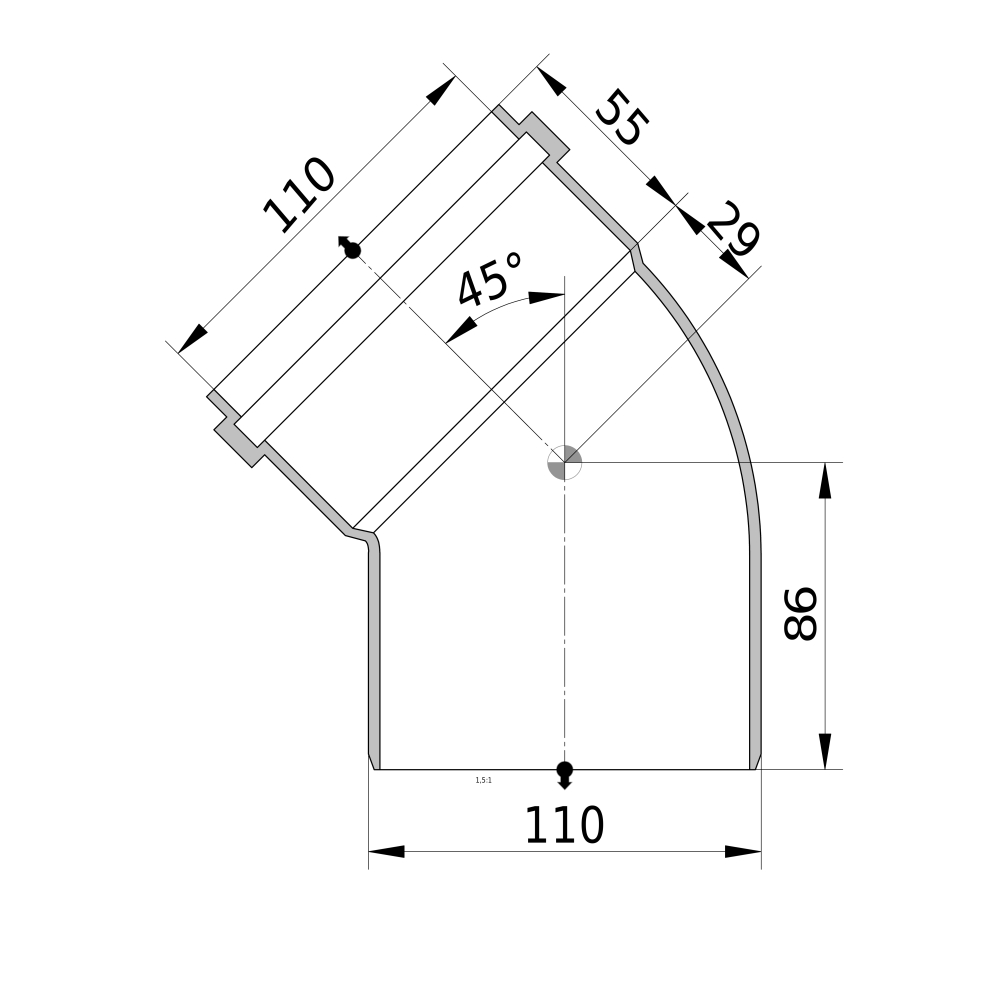 Kolano kanalizacyjne zewnętrzne Wavin PVC-U 110 / 45°