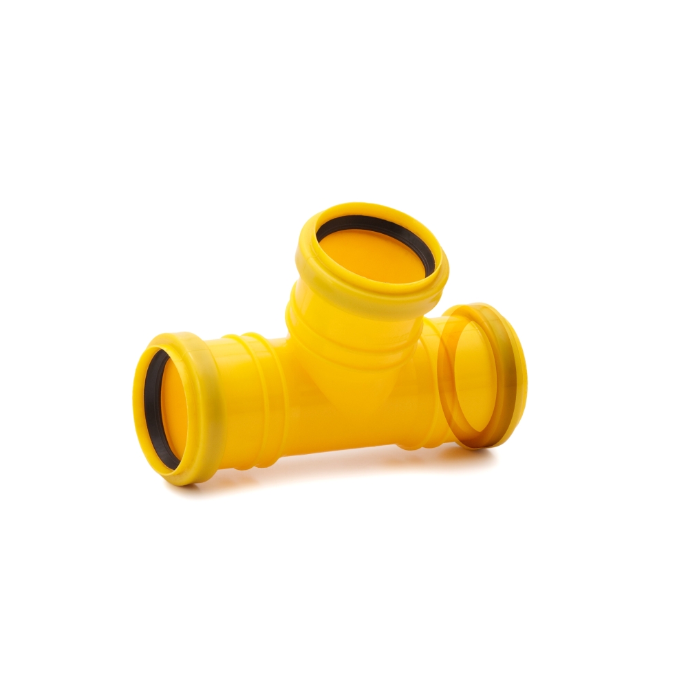 Trójnik drenarski 50, łączy rury drenarskie 50 mm. Kolor żółty.