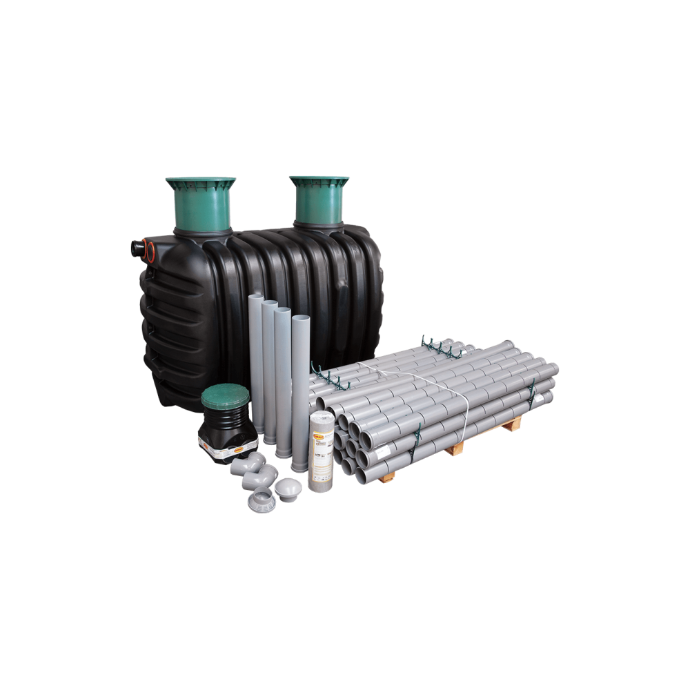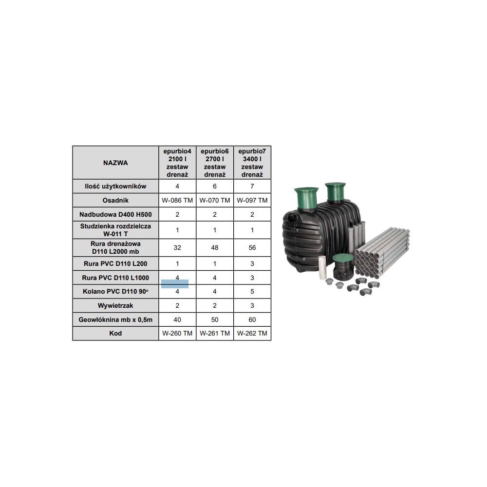 EPURBIO 7 RLM 3400 L Oczyszczalnia Graf Zestaw:zbiornik+drenaż+rury kan+geowłóknina+teleskopowe nadbudowy osadnika D400 H500