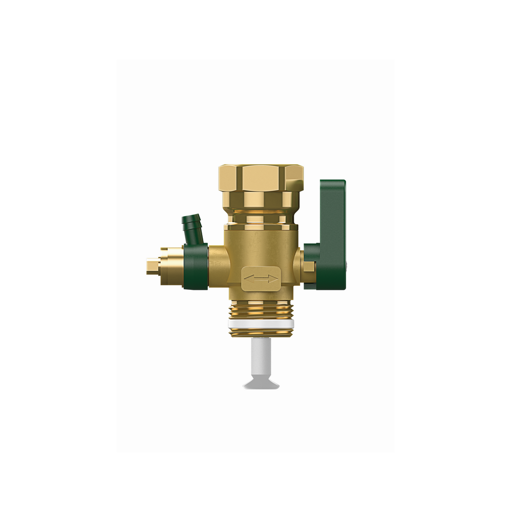 Armatura przepływowa do bezpiecznego odcięcia i opróżnienia przeponowego naczynia wzbiorczego Refix DD zgodna z normą DIN 4807-cz.5. Możliwość łączenia z trójnikami o średnicy znamionowej także > Rp 3/4.