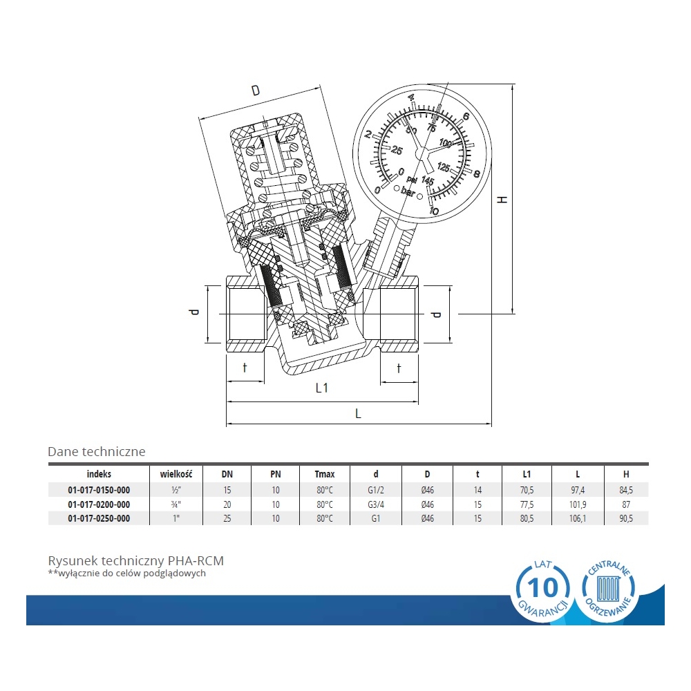 Reduktor ciśnienia wody mosiężny Perfexim PHA-RCM 1/2" z manometrem
