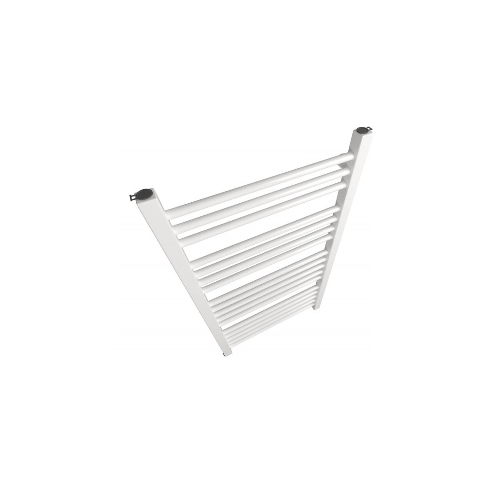 Funkcjonalny grzejnik łazienkowy z podłączeniem dolnym, przystosowany do podłączenia grzałki elektrycznej, umożliwiającej wykorzystanie go poza sezonem grzewczym.