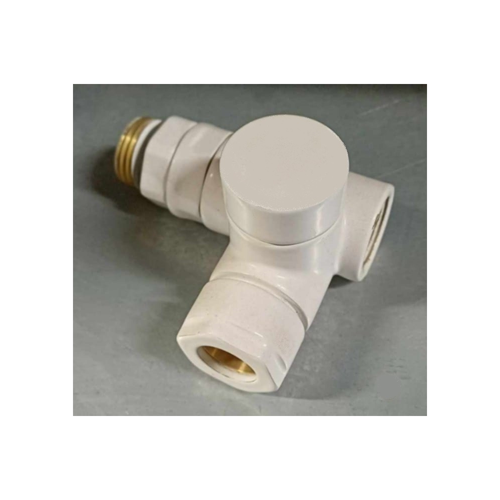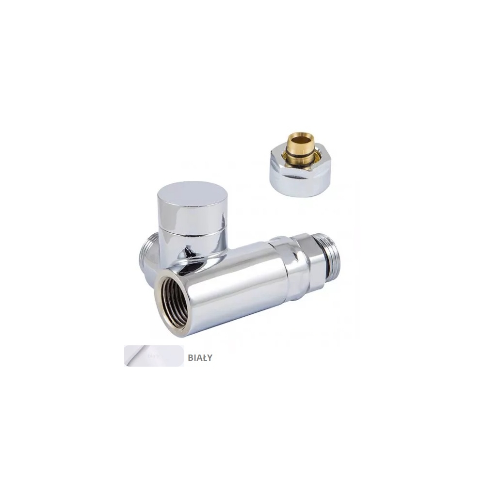 Zawór (trójnik) grzejnikowy powrotny lewy do montażu grzałki, Biały, GZ 1/2" Cu