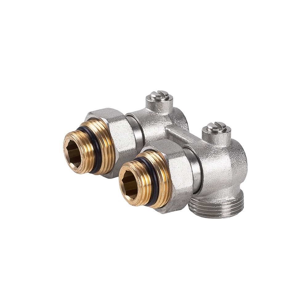 Zawór grzejnikowy (odcinający) podwójny kątowy 3/4" z nyplami VKO Perfexim niższy, na śrubokręt