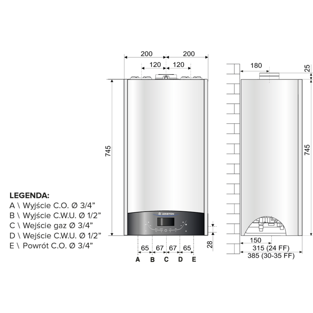- Gotowy na zdalne sterowanie Ariston NET dzięki wbudowanemu modemowi wi-fi.