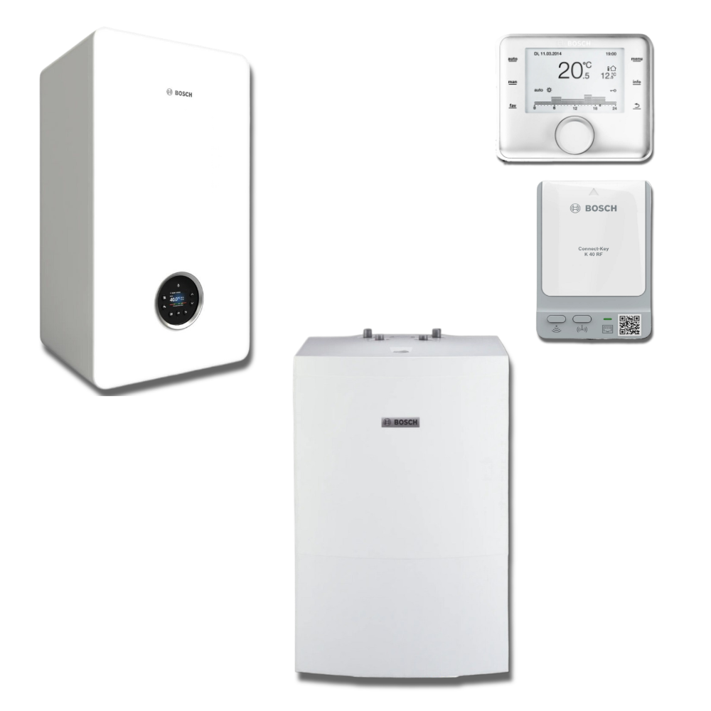 Pakiet kocioł kondensacyjny Bosch Condens GC5700iW 15P + zasobnik WD120B + regulator pogodowy CR 400 + K40RF