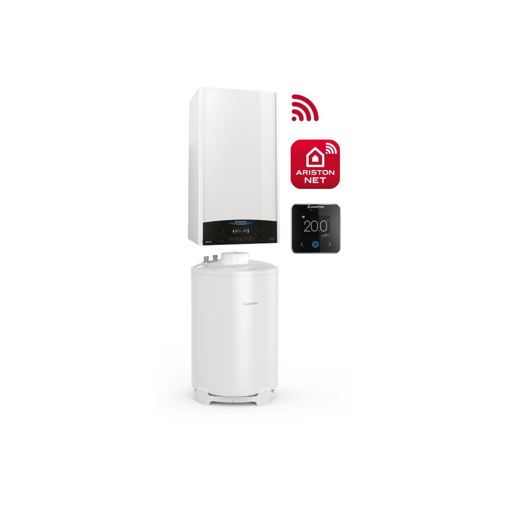 Pakiet kotła jednofunkcyjnego kondensacyjnego z zasobnikiem, regulatorem pogodowym i zdalnym sterowaniem za pomocą aplikacji na smartfon ARISTON NET