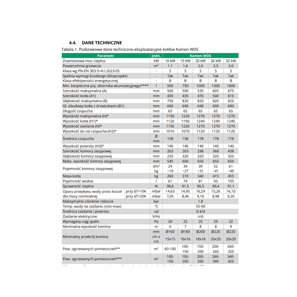 Kamen WDS to nowoczesny, kompaktowy kocioł dolnego spalania spełniający wymagania 5 klasy oraz Ekoprojektu (Ecodesign). Kocioł może pracować wyłącznie na mocy nominalnej oraz z wykorzystaniem bufora ciepła (zbiornika akumulacyjnego). Kocioł pracuje przy wykorzystaniu naturalnego ciągu kominowego.