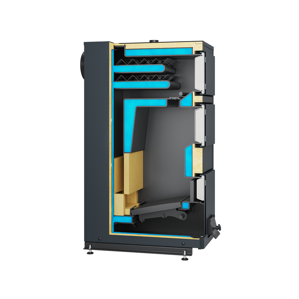 W zależności od wymagań kotłowni kocioł może mieć wylot spalin skierowany do tyłu lub do góry. Nowatorskie rozwiązania i sprawdzone materiały gwarantują długą żywotność i bezawaryjną pracę.