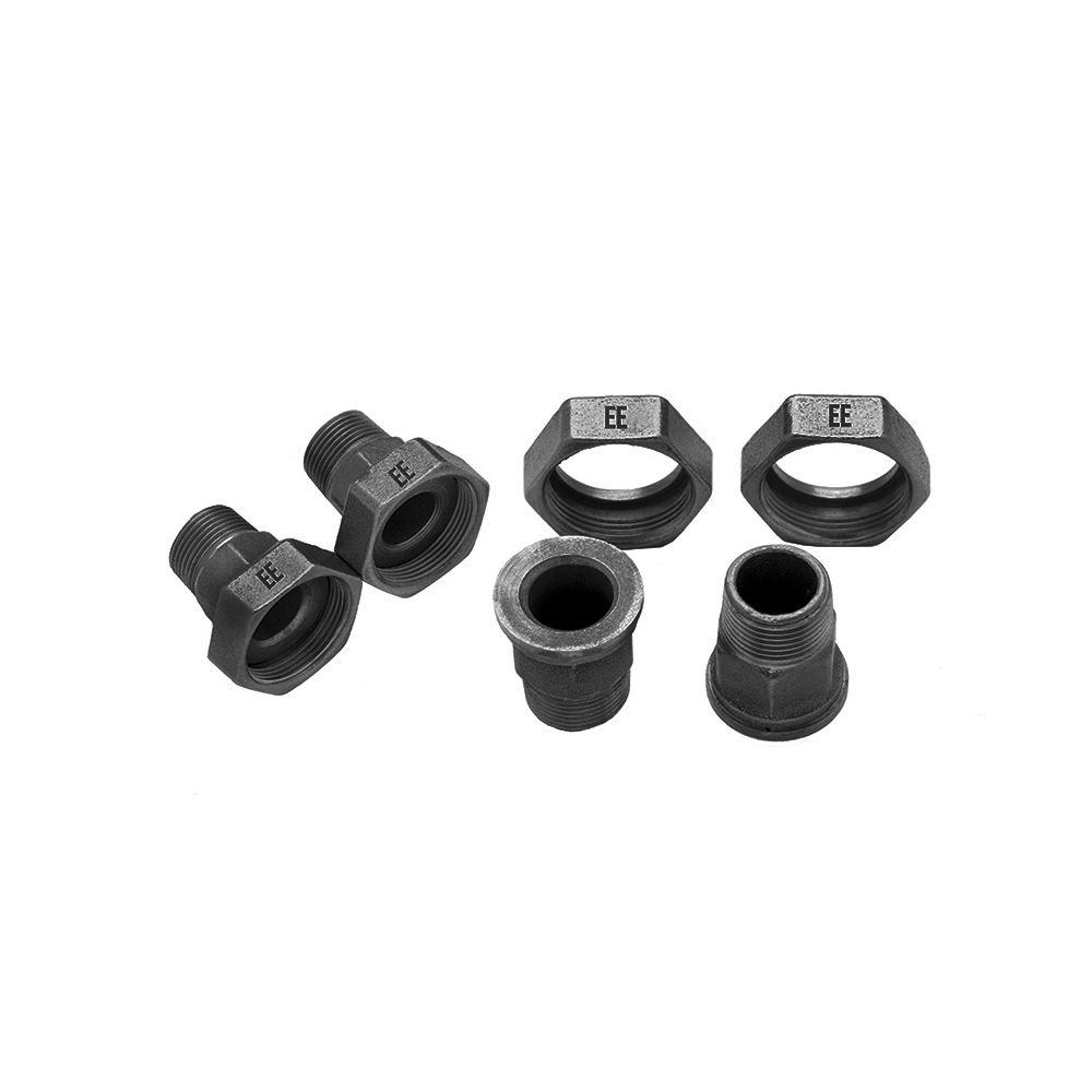 ODLEWNIA ZAWIERCIE produkuje łączniki czarne i łączniki ocynkowane, wykonane z żeliwa ciągliwego, białego marki EE, które znajdują swoje zastosowanie w połączeniach rurowych gwintowanych, a w szczególności w sieciach instalacji wodociągowych, gazowych, parowych, centralnego ogrzewania, tryskaczowych itp. do przenoszenia cieczy i gazów nieagresywnych. Zarówno złączki ocynkowane, jak i złączki czarne, można stosować w instalacjach wewnątrz i na zewnątrz budynków, ułatwiają wykonywanie przeróbek instalacji i demontażu nieniszczącego.