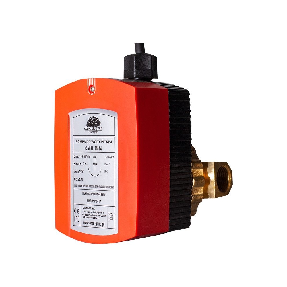 Pompa C.W.U. 15-14 jest przeznaczona do wymuszania cyrkulacji w obiegach ciepłej słodkiej wody użytkowej, w których temperatura wody nie przekracza 95°C. Pompa przeznaczona do pompowania wody bez zawartości części stałych szlifujących oraz zanieczyszczeń włóknistych.