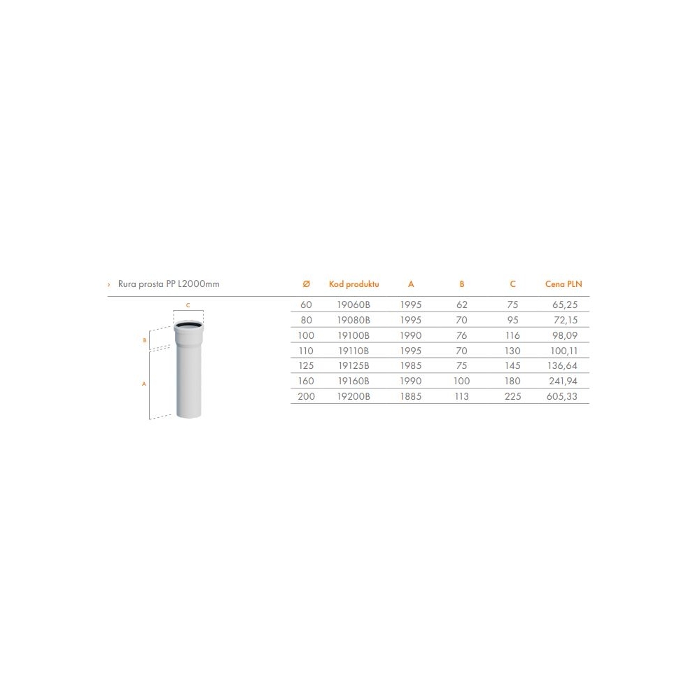 RICOM Rura spalinowa prosta PP 80 L-2000mm