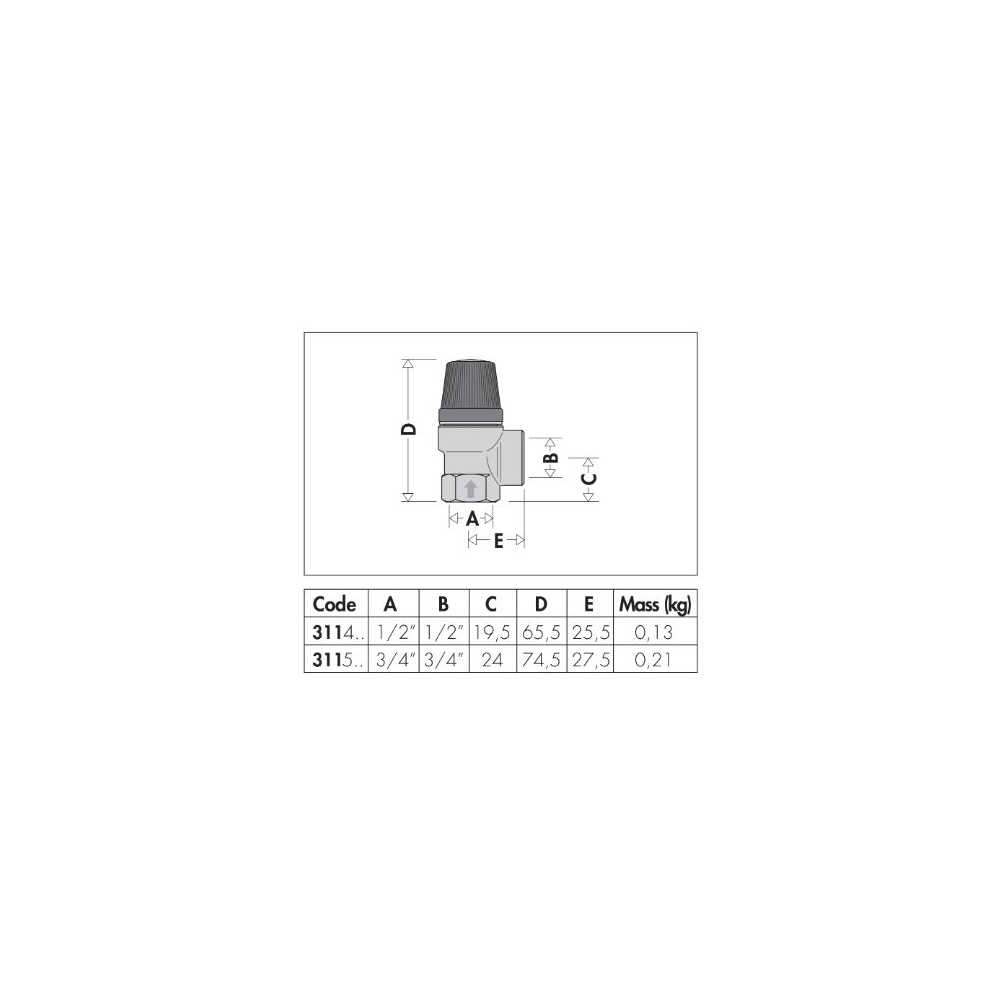 Zawór bezpieczeństwa. Przyłącze z gwintem wewnętrznym. Ciśnienie otwarcia: + 20% ustawionego. Ciśnienie zamknięcia: - 20% ustawionego. Przyłącze: G 1/2" (ISO 228-1) GW. Zakres temperatury medium: 5–110 °C. Nastawa: 3,5 bar. PN (Ciśnienie nominalne): PN 10.