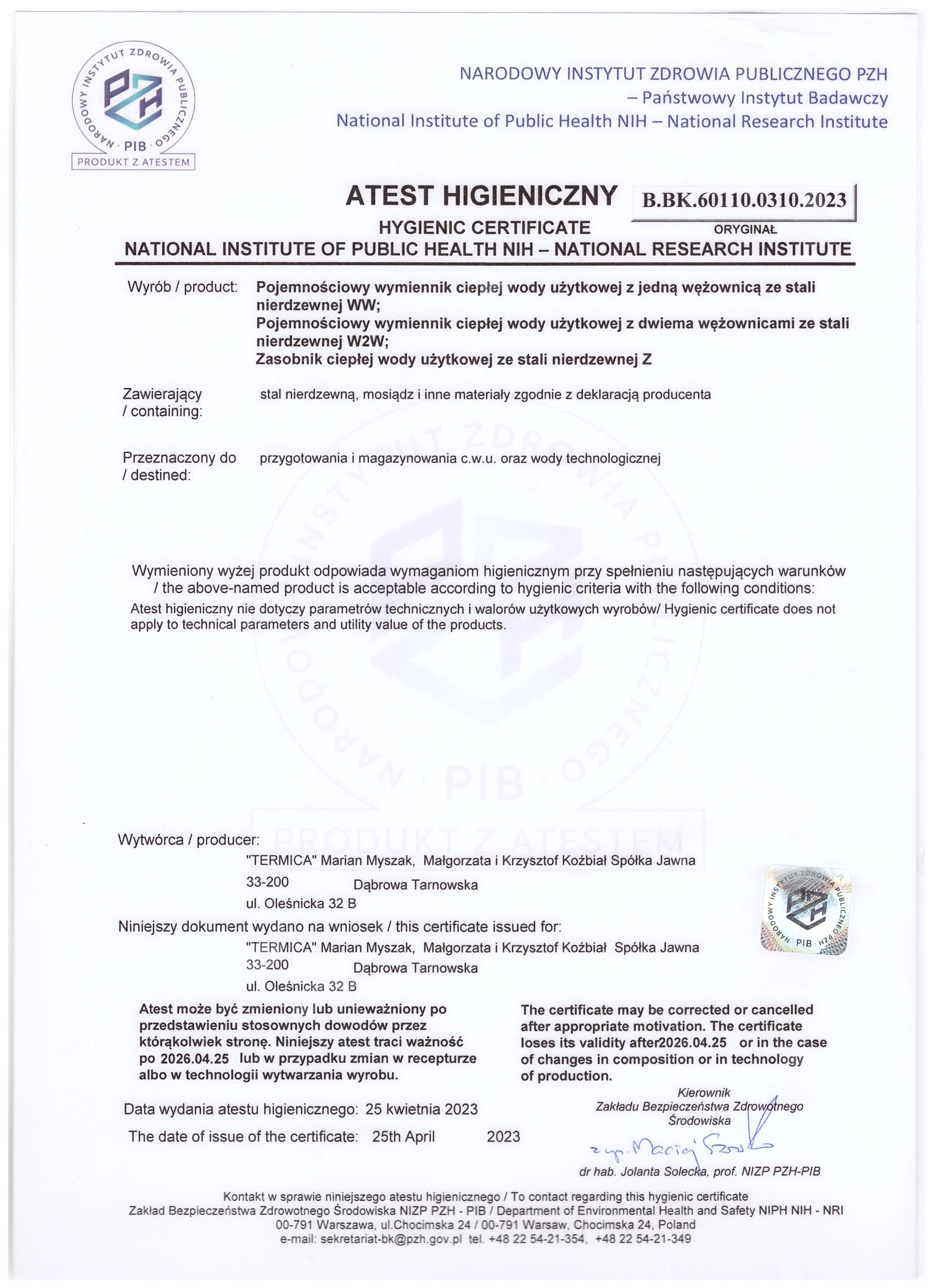 - Posiadają atest Państwowego Zakładu Higieny.
