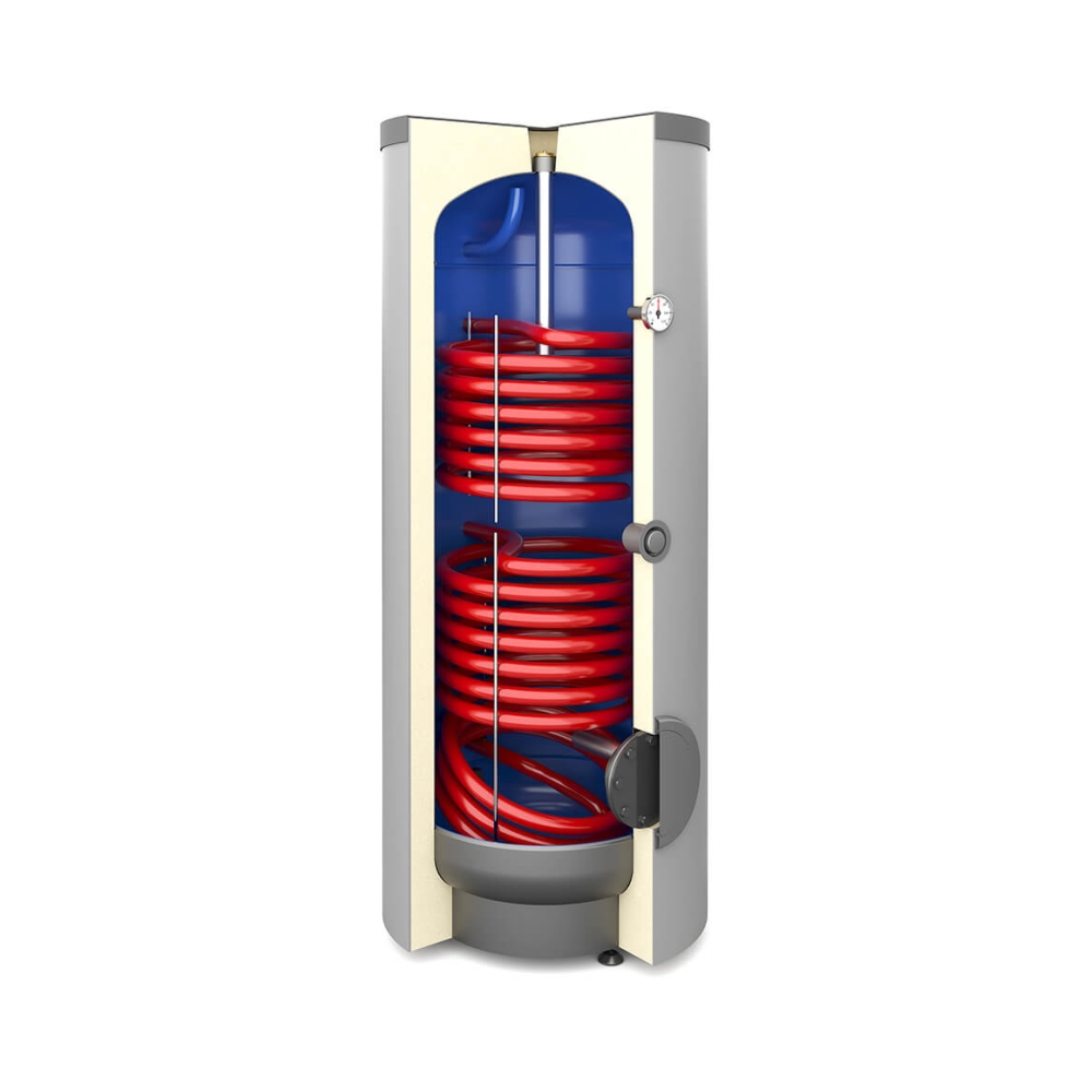 Wymiennik stojący Tower Biwal 250 litrów z dwiema wężownicami spiralnymi, Skay