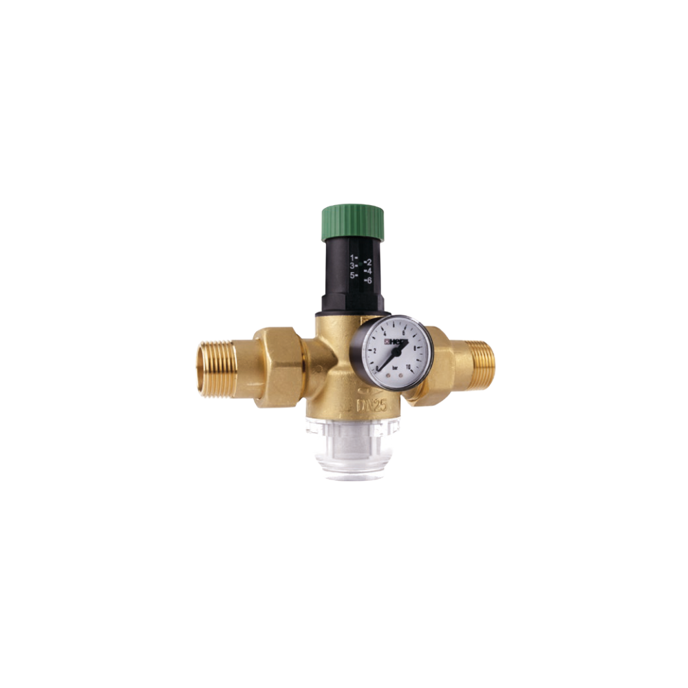 Reduktor ciśnienia wody 1" z filtrem i manometrem.