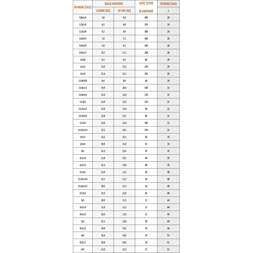 | Seria | Żeliwo czarne - gwintowane |