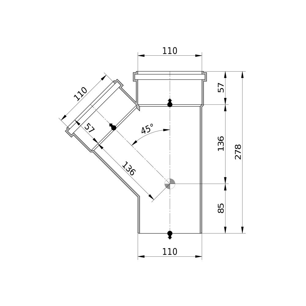 Trójnik kanalizacyjny Wavin PVC 110 / 45°