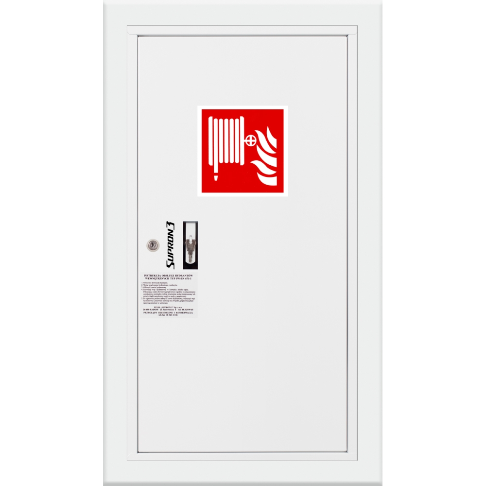 Hydrant DN33 wnękowy boczny, wąż 20m, ocynk fasada, zamek patent, RAL 9003 prawy o numerze katalogowym S-33-WB20-OFP-9003P w kategorii Szafki hydrantowe, Instalacja przeciwpożarowa. Produkt wyprodukowany przez markę SUPRON, seria Hydranty DN33.