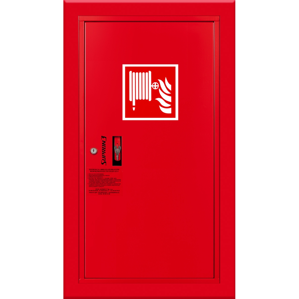 Hydrant DN33 wnękowy boczny, wąż 20m, ocynk fasada, zamek patent, RAL 3000 prawy o numerze katalogowym S-33-WB20-OFP-3000P w kategorii Szafki hydrantowe, Instalacja przeciwpożarowa. Produkt wyprodukowany przez markę SUPRON, seria Hydranty DN33.