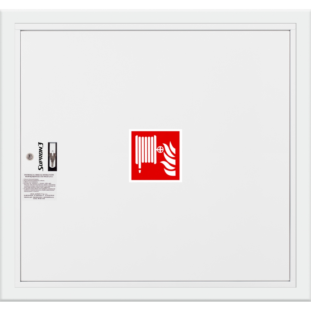 Hydrant DN33 wnękowy, wąż 30m, ocynk fasada, zamek patent, RAL 9003 o numerze katalogowym S-33-W30-OFP-9003 w kategorii Szafki hydrantowe, Instalacja przeciwpożarowa. Produkt wyprodukowany przez markę SUPRON, seria Hydranty DN33.