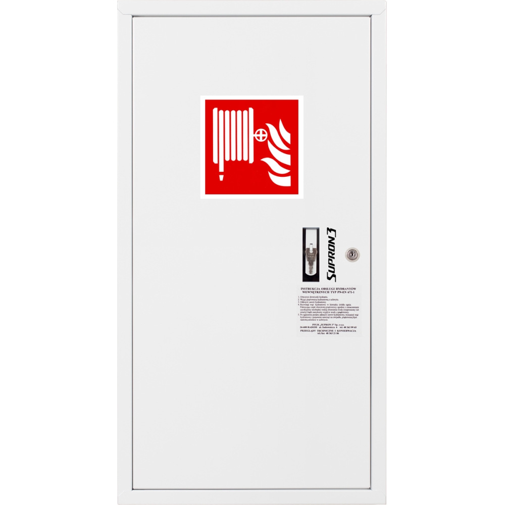 Hydrant DN33 zawieszany boczny, wąż półsztywny 30m, ocynk fasada, zamek patent - LEWY BIAŁY