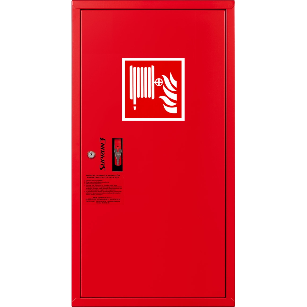 Hydrant DN33 zawieszany boczny, wąż półsztywny 30m, ocynk fasada, zamek patent - PRAWY CZERWONY