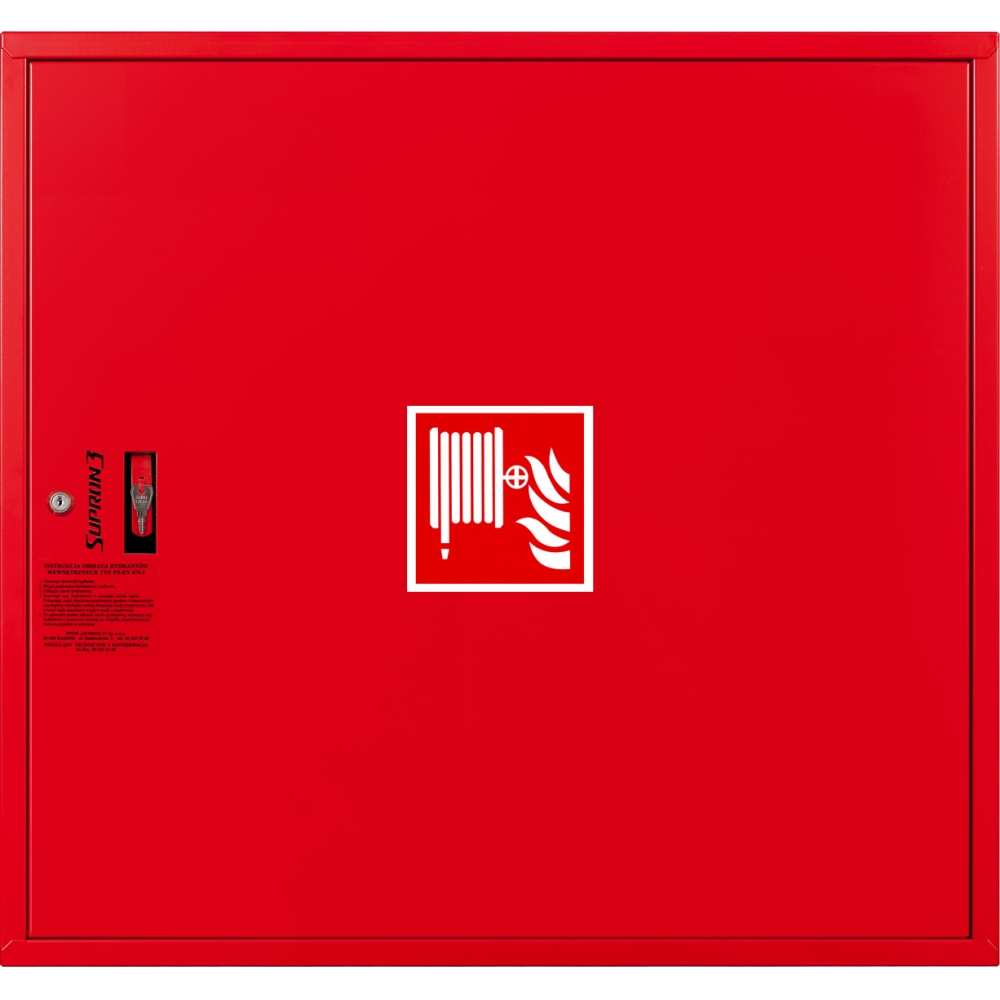 Hydrant DN33 zawieszany, wąż 30m, ocynk fasada, zamek patent, RAL 3000 o numerze katalogowym S-33-Z30-OFP-3000 w kategorii Szafki hydrantowe, Instalacja przeciwpożarowa. Produkt wyprodukowany przez markę SUPRON, seria Hydranty DN33.