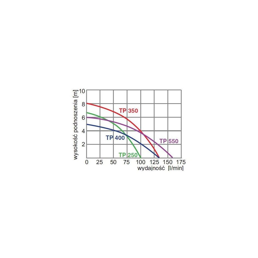 Pompa TP 250 przeznaczona jest do pompowania czystej, zimnej wody ze studni kręgowych i zbiorników. Stosuje się ją często do wypompowywania wody z zalanych pomieszczeń. Pompa posiada sterowanie pływakowe które w zależności od poziomu pompowanej cieczy steruje jej załączaniem i chroni przed pracą na sucho.