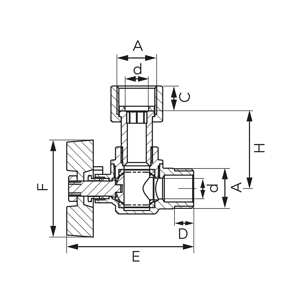 Zawór kulowy kątowy nakrętno-wkrętny z motylkiem i półśrubunkiem