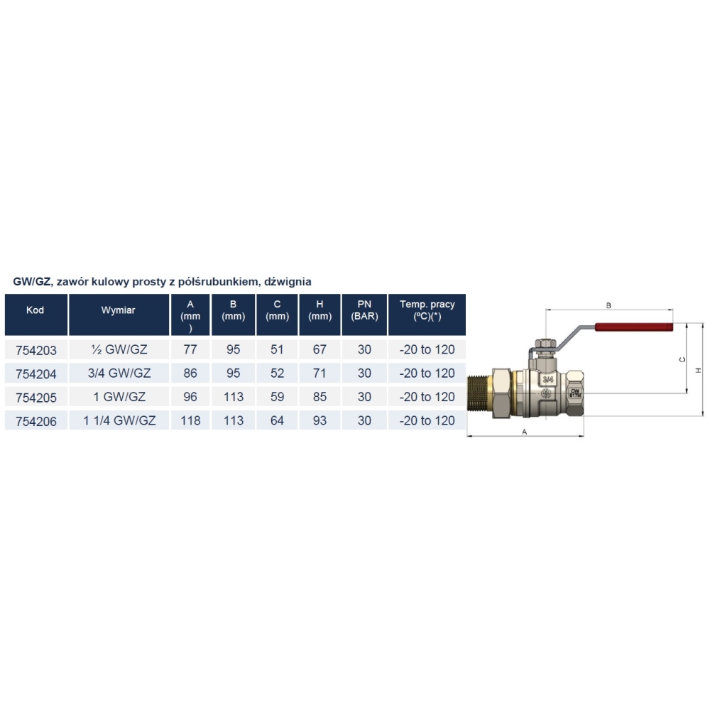 Zawór kulowy Sena z półśrubunkiem 1" rączka inox