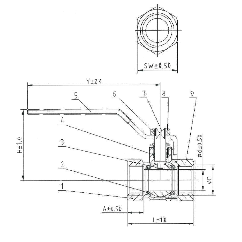 Zawór mosiężny kulowy wodny 6/4" STRONG rączka