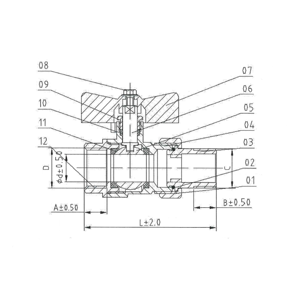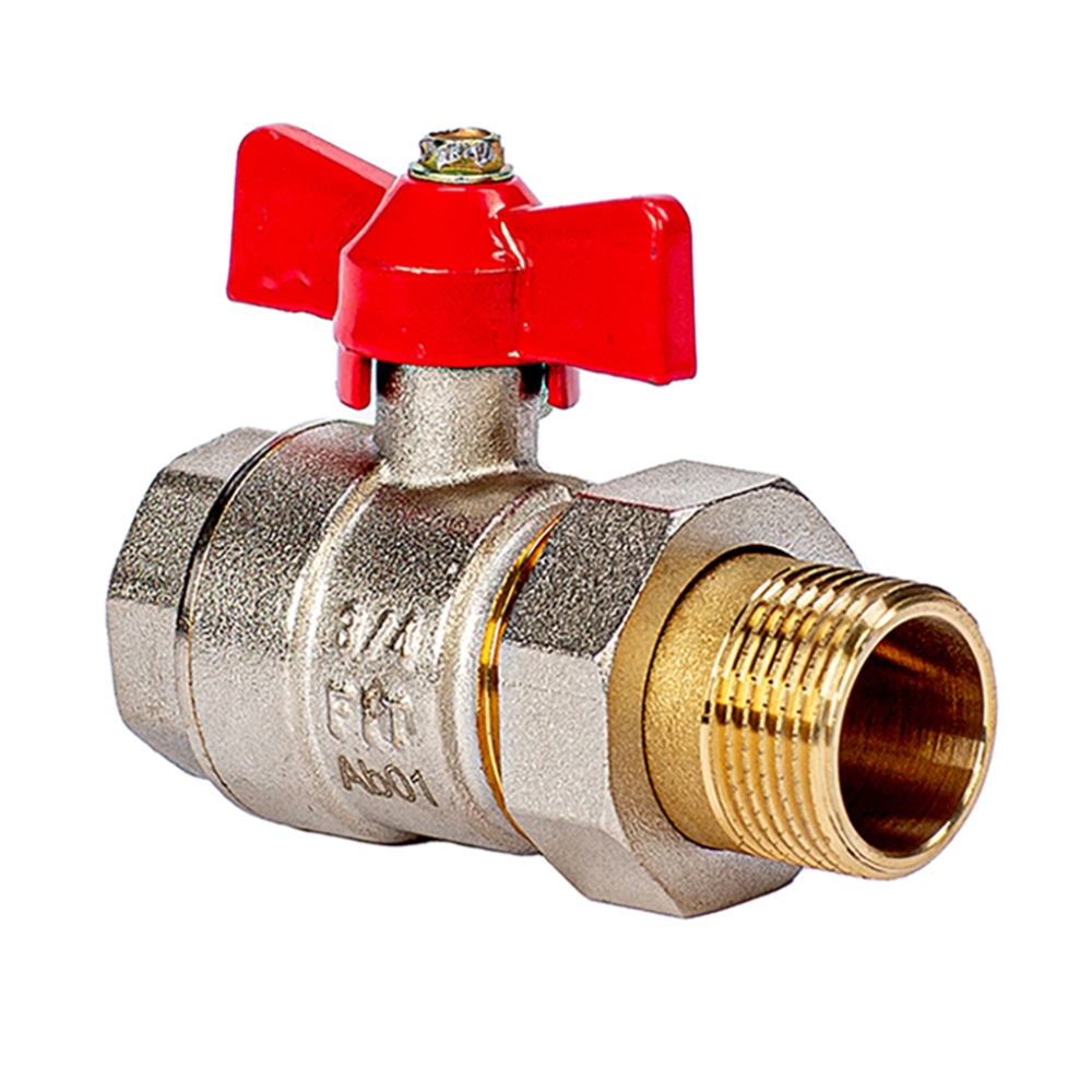 Zawór mosiężny kulowy wodny z półśrubunkiem 3/4" motylek