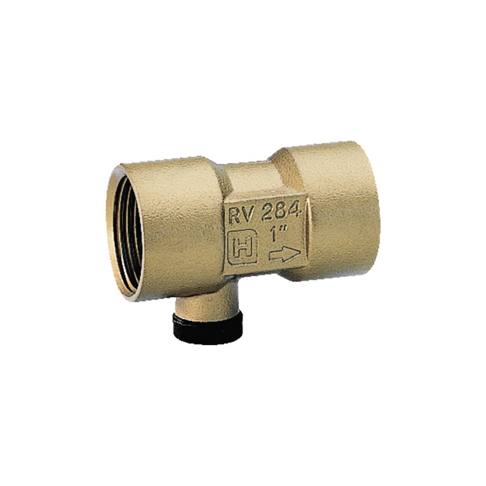 Zawór zwrotny antyskażeniowy EA-RV 284, z możliwością nadzoru, przyłącze gwinty wewnętrzne Rp 3/4", ciśnienie nomnalne PN25, maksymalna temperatura robocza 65°C. Obudowa zaworu z mosiądzu, wkładka zaworu z wysokiej klasy tworzywa syntetycznego, uszczelka pierścieniowa z NBR, zaślepka z tworzywa syntetycznego.