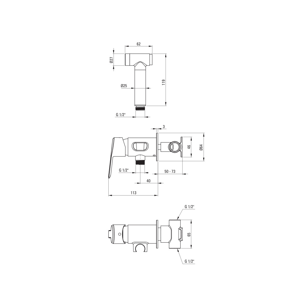 Bateria bidetowa podtynkowa ze słuchawką typu bidetta chrom ARNIKA.