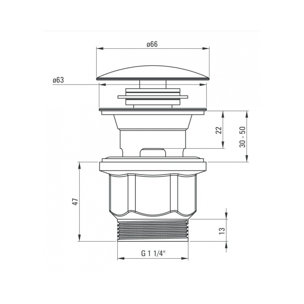 CLICK-CLACK Korek do umywalki okrągły z przelewem- mały, chrom