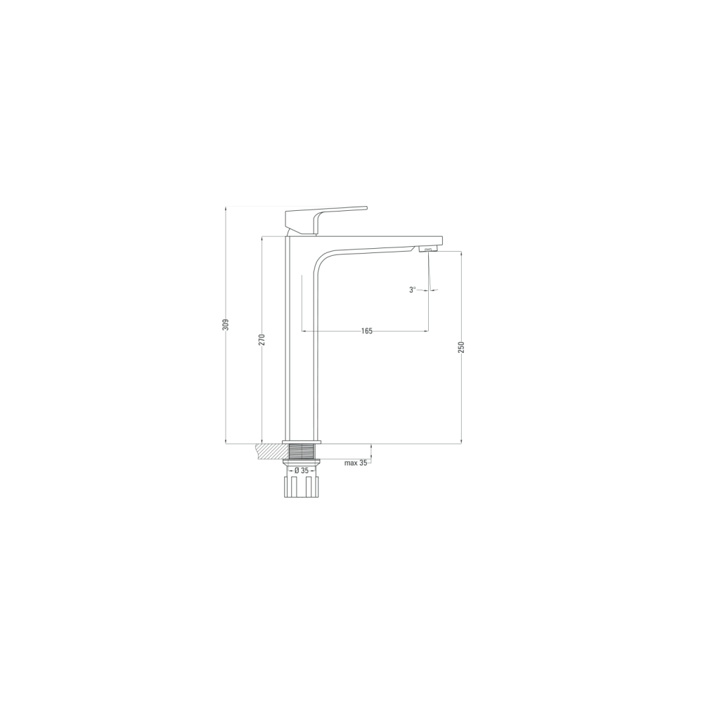 Umywalka stojąca z podwyższonym korpusem to model jednouchwytowy z aeratorem i wykończonym chromowym kolorem.