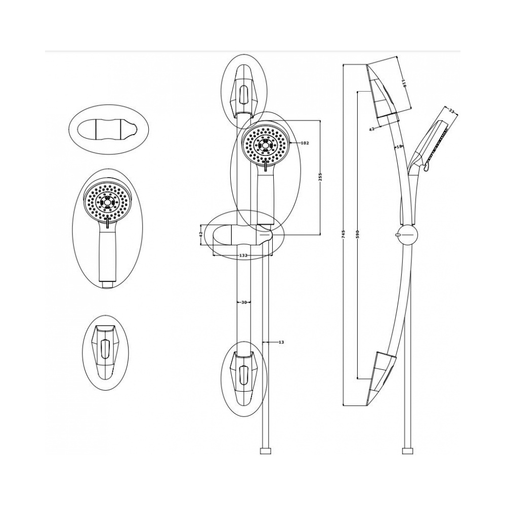 - Słuchawka 5-funkcyjna o średnicy 10,3 cm