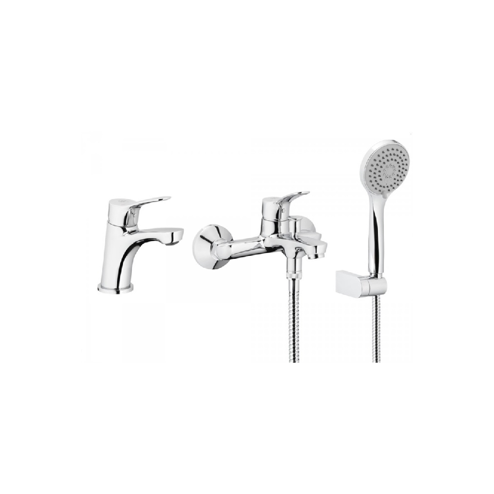 MORRIS Zestaw 3 w 1 Bateria umywalkowa + wannowa z natryskiem punktowym, chrom